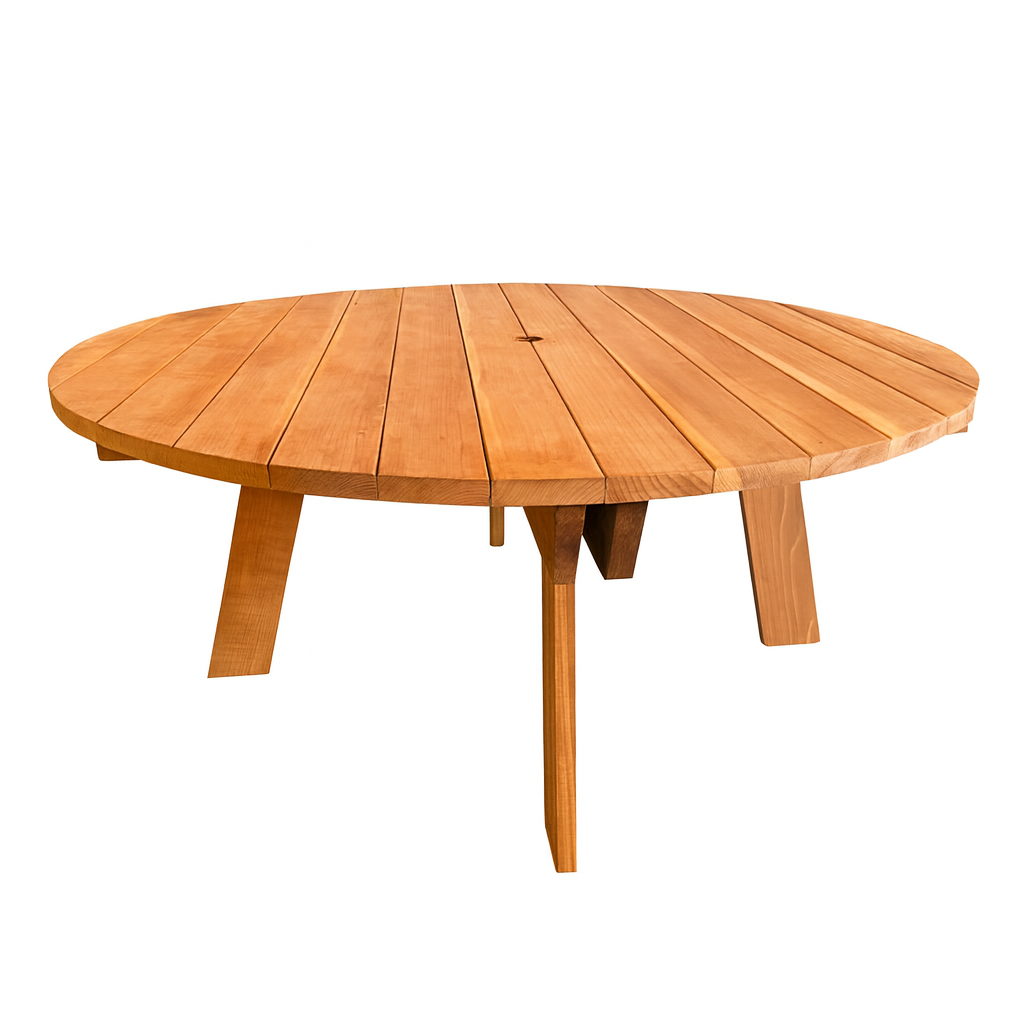Super Deck Round Redwood Picnic Table
